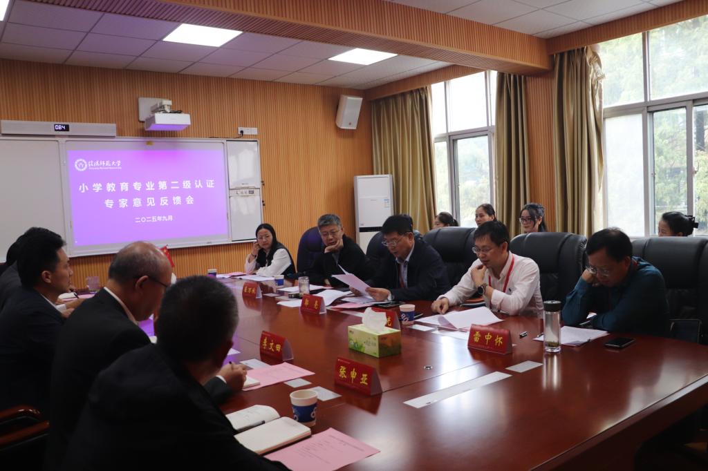 9月20日,小学教育专业认证专家意见反馈会在教七楼301会议室召开。以安徽科技学院原副校长郭亮教授为组长的认证专家组、学校副校长朱晓东、教师教育学院班子成员、专业负责人、认证联络员以及教师代表出席会议。