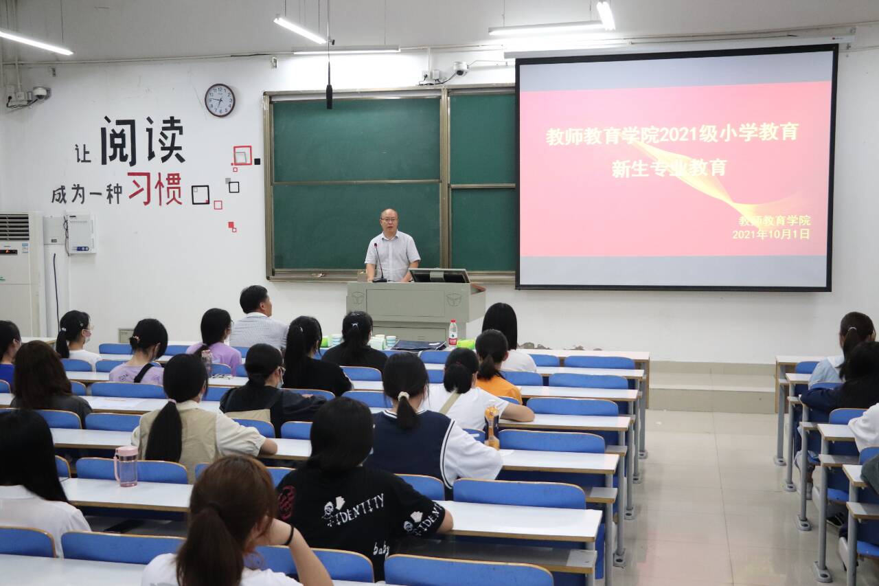 为了促进新生更快地适应大学学习生活,10月1日,教师教育学院在社科楼121举行了2021级新生入学专业教育大会。与会人员有教师教育学院院长付永昌、副院长李文田、教学秘书赵国龙、辅导员刘莅原以及2021级全体小学教育专业本科新生。会议由李文田主持。
