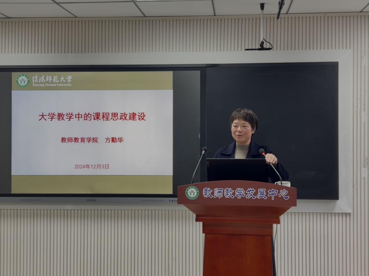 研讨会上,教师教育学院方勤华教授做了题为《大学教学中的课程思政建设》的讲座。她以“为什么要做课程思政”切入讲座主题,并从国家发展、高等教育发展对人才培养的新要求等视角提出对教师提出了要理解立德树人大氛围,开启课程思政新实践的吁求。接着从理解课程思政的定义与辨析其内涵出发,提出课程思政与学科专业融合的实现要秉持实事求是、突出重点、注重实效和力求创新的原则,在教学各方面和各环节都要遵循教育教学的规律实施课程思政。最后结合优秀案例分享了课程思政教学案例的撰写标准和注意事项。