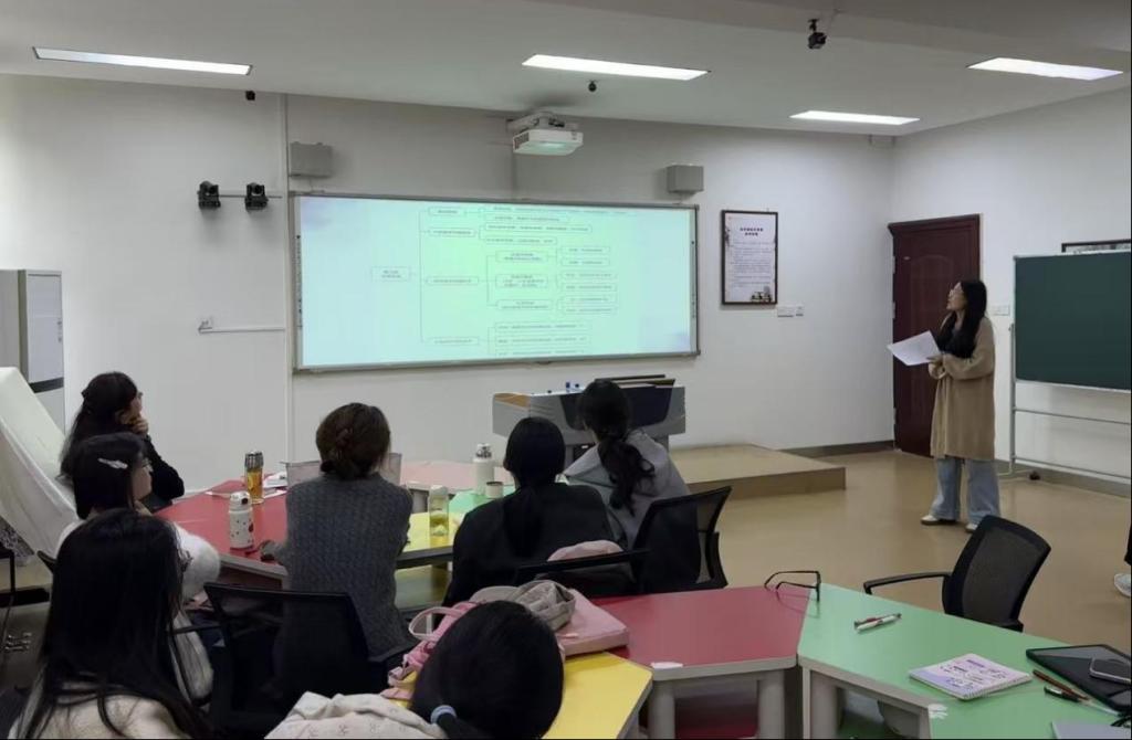 为深化学生理论素养,提升学术思辨能力,推动理论学习和教育实践深度融合,10月29日,教师教育学院小学教育专业硕士研究生读书报告会在教七楼402室举行。本次报告会由王陈祯博士发起并主持,2025级小学教育专业硕士研究生全体参与。