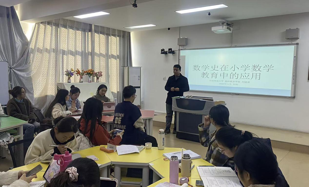 为提升研究生理论修养,推动学术研究与教学实践深度融合,11月21日,学院在教七楼402室开展了以“HPM与小学数学”为主题的读书报告会。本次报告会由刘建新博士主持并发起,2025级小学教育专业研究生全体参加。