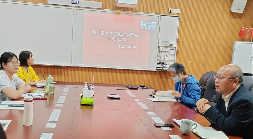 9月26日,教师教育学院在教七楼301召开2021级小学教育专业硕士研究生毕业论文推进会。副院长李文田、导师代表吴宏、研究生秘书常燕燕、2021级小学教育专业硕士研究生出席此次会议,2022级全体研究生参加旁听学习。