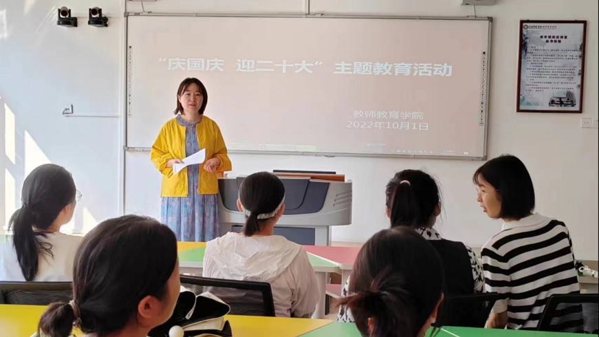 红旗飘飘,万众欢腾,在伟大祖国73岁生日之际,为了欢度国庆,喜迎二十大,10月1日,教师教育学院小学教育研究生在教七楼402举行“庆祝国庆,喜迎二十大”主题教育活动。活动由研究生秘书常燕燕主持,2021级、2022级小学教育专业硕士研究生参加此次活动。