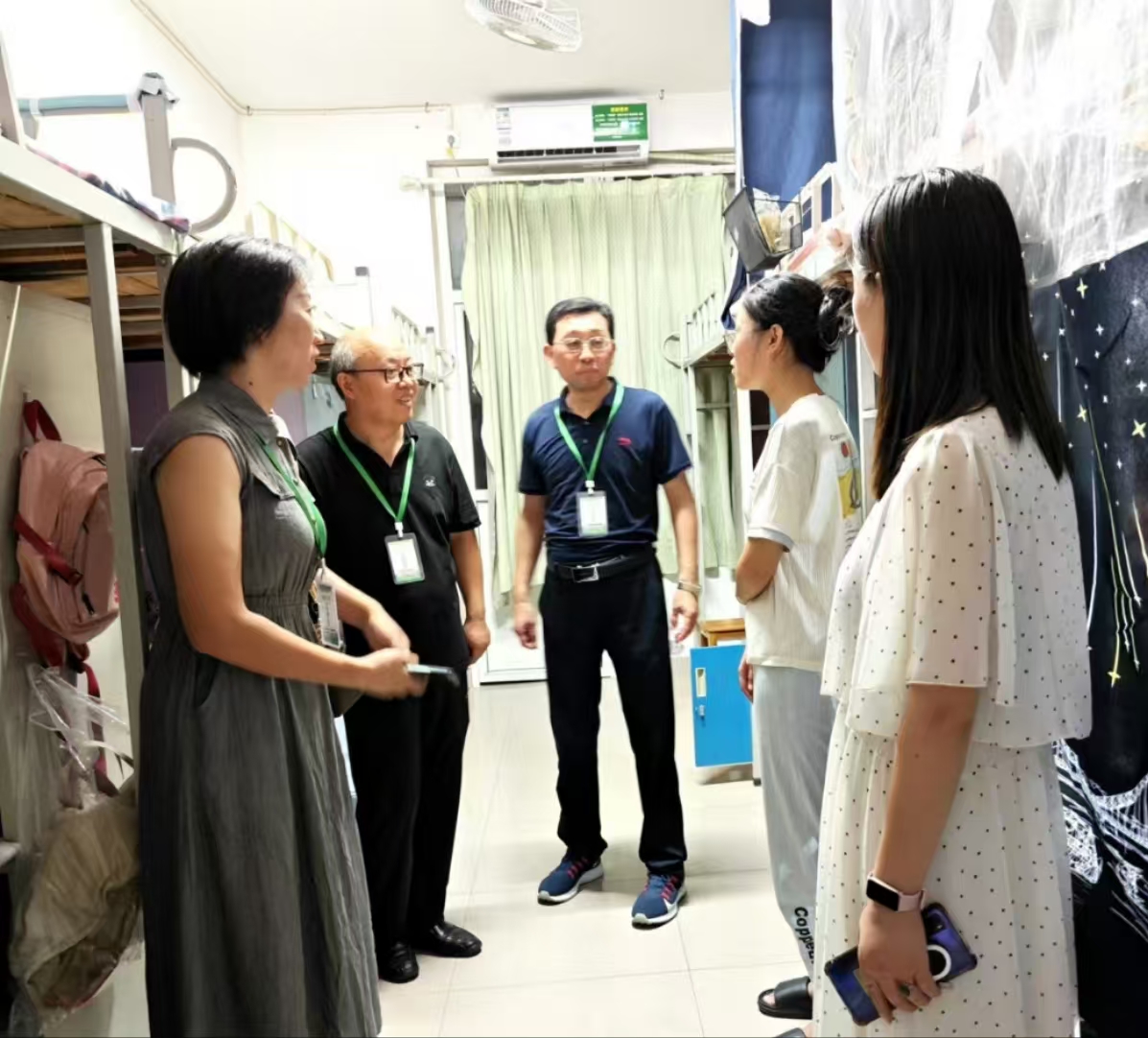 走访过程中,学院领导一行与新生亲切交谈,详细询问新生日常作息和寝室情况,了解新生到校后的感受和适应情况,表示有困难及时向老师寻求帮助。随后,潘登对学生寝室卫生和安全隐患进行了排查,鼓励同学们养成良好的生活习惯,共同营造安全、卫生的寝室环境。