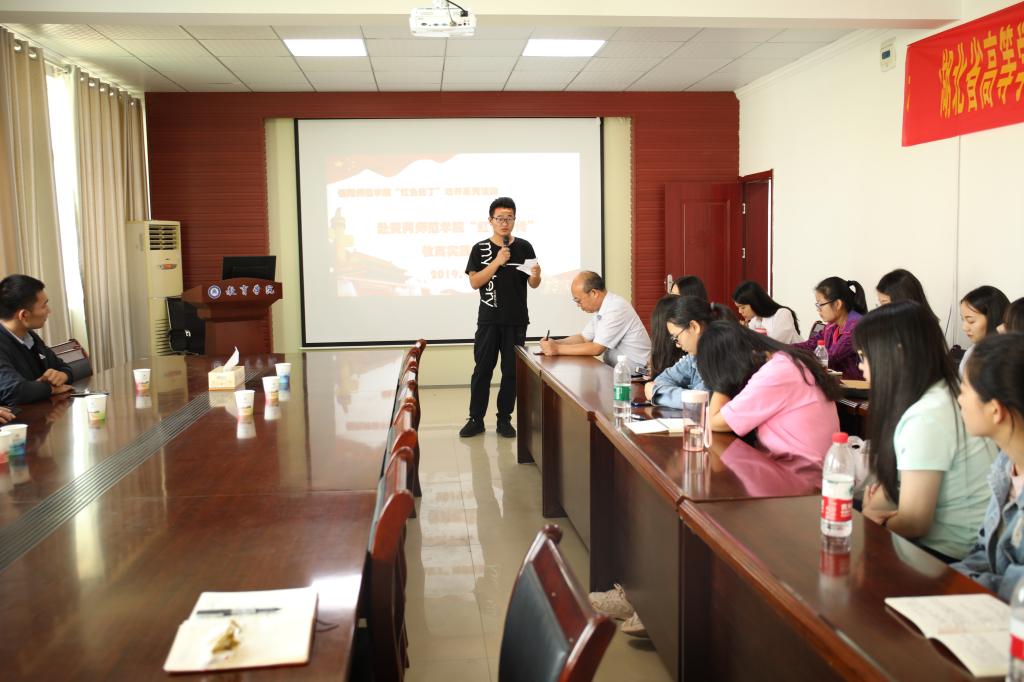 28日早上7:00,同学们准时起床就餐。7:40,师生集中前往黄冈师范学院。8:00,师生在黄冈师范学院致远楼616教室聆听了黄冈师范学院马克思主义学院刘清教授的《红安精神的解读》专题报告。刘教授分别从“红安的由来”“红安的革命历史”“红安精神的解读”等方面进行了阐述。首先,由红安名称的由来切入,从红安的地理位置、歌谣、历史典故讲解了红安的由来;接着,介绍了红安的革命历史,在大革命时期,红安打响了黄麻起义第一枪,为了自由和解放,红安儿女不惜抛头颅洒热血,留下了众多光荣的革命事迹;最后,阐释了红安精神的内涵与价值,红安精神是红色精神的重要组成部分,是“一要三不要,一图两不图”的革命精神,是万众一心、为党为民、扑诚勇毅、不胜不休的无畏精神。报告在热烈的掌声中落下帷幕。随后,师生共同观看学习黄冈师范学院大型原创舞蹈音乐剧《红色薪传》,该剧将红色基因作为鲜活教材融入到剧目创作中、融入到文化演出中、融入到师生心中,让师生进一步受到红色革命精神的熏陶。结合报告和视频资源,园丁班学生代表分别做了感悟发言。