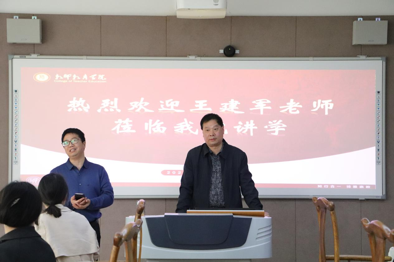 3月30日下午,信阳市书法家协会副主席王建军于教七楼201为2017级、2019级红色园丁实验班成员及相关老师做了“经典的魅力:王羲之行书《圣教序》解析”主题报告。报告会由实训室主任张祥耀主持。