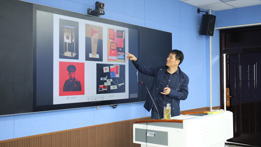 邹教授从大别山红色资源的当代价值、大别山红色资源美术创作的当代意义、大别山红色资源美术创作思考、大别山红色资源美术创作实践四个方面进行了翔实阐释。在实践方面,邹教授结合大别山红色文化作品的创作过程,指出创作时要注意史料、图片、实景素材的收集,选择恰当的表现形式,确定立意,组织画面呈现作品。他谈到,我们今天交流红色美术创作,既是回望过往的奋斗史,也是眺望前方的奋进路。同时,他引导同学们赓续红色基因,用画笔描绘历史,用情感温暖时代。