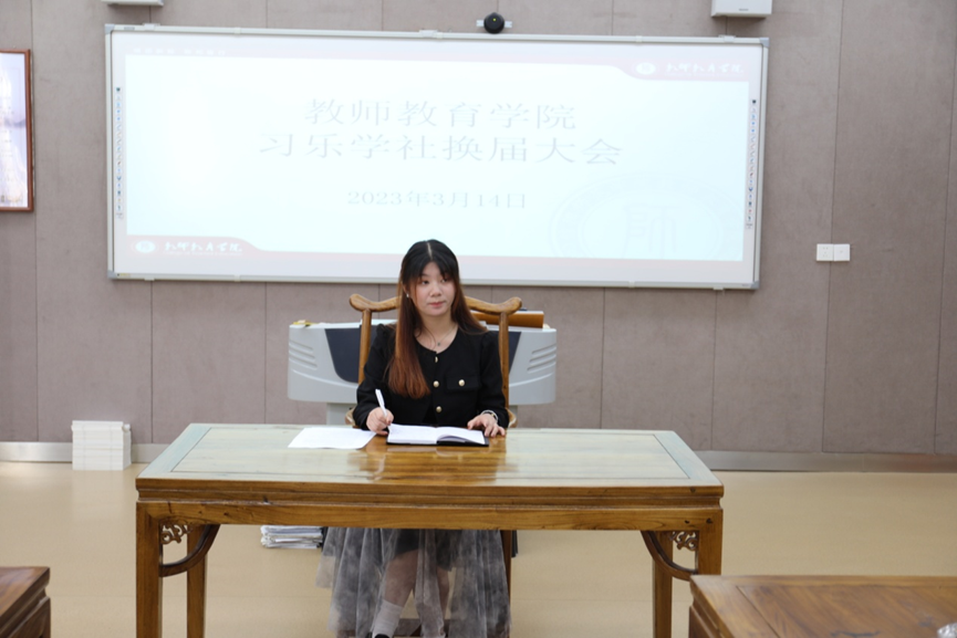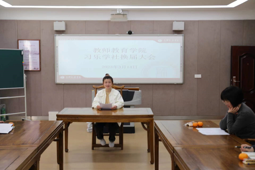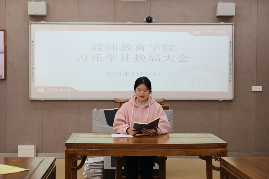 3月14日,教师教育学院习乐学社第五届换届大会在教七楼201教室顺利举行。习乐学社指导老师谭阿明、社团全体成员参加本次会议。会议由副社长王梦丹主持。