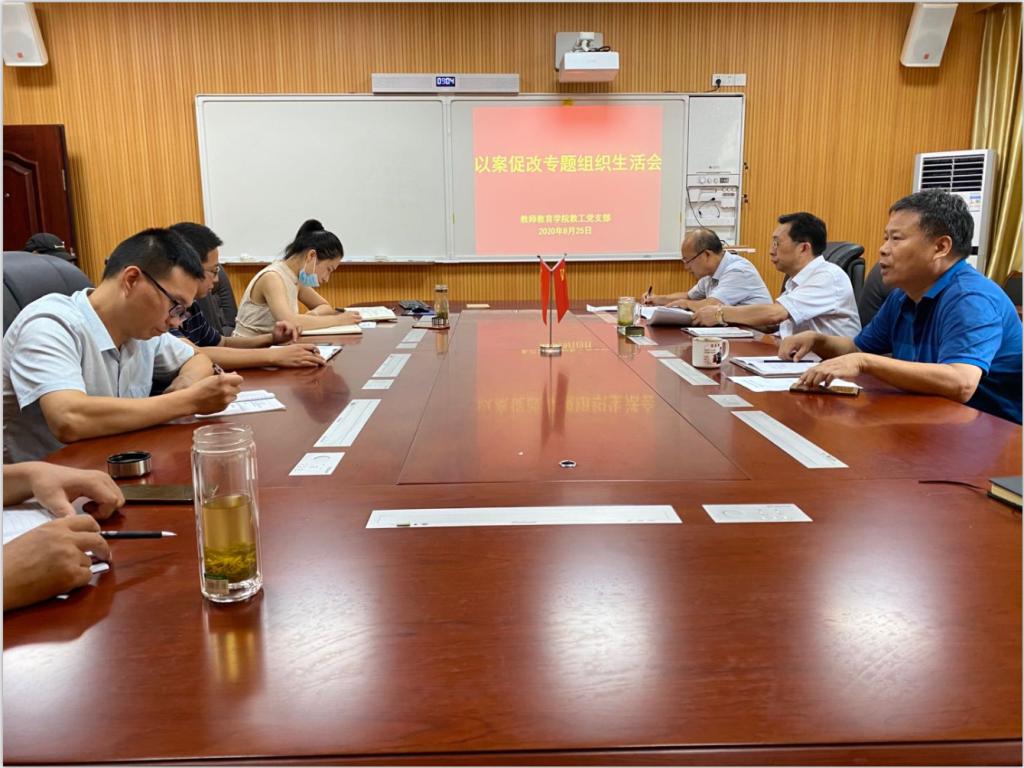 8月25日,教师教育学院教工党支部在教七楼301会议室召开“以案促改”专题组织生活会。支部全体党员参加会议。