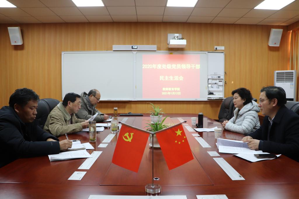 1月12日,教师教育学院2020年度处级党员领导干部民主生活会在教七楼301会议室召开,副校长王金云、校党委委员、宣传部部长丁少锋出席会议并讲话,教师教育学院处级党员领导干部参加会议。会议由教师教育学院党委副书记潘登主持。