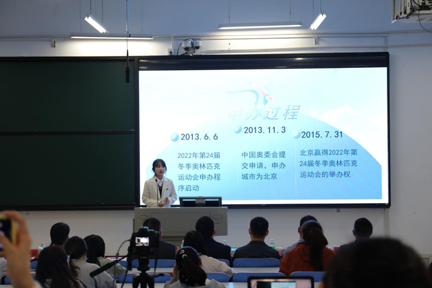 赛前,王艳蕊书记倾情致辞,她指出,此次比赛恰逢二十大召开前夕,既是对十八大以来所取得的成果经验的总结,也是大学生发挥思想性、创造性,展示自身理论素养与精神面貌,增强明辨是非能力的好时机。比赛伊始,九位参赛选手分别从政治经济社会生态等不同方面入手,根据自身选择的主题,结合当前时代形势,灵活运用短视频等新媒体手段,对个人所制作的PPT进行精细讲解。其中,选手唐亚旭首先介绍碳达峰、碳中和的含义,阐明由气候变化引起的一系列自然灾害,借此提出实行“双碳”的必要性、战略性意义。她带领同学们重温冬奥申奥办奥原则,指出本次冬奥会是绿色奥运,利用先进的技术为实现双碳目标树立成功典范,助力我国经济绿色转型,推动建设天蓝地绿水清的美丽家园。选手李欢欢从“温良”一词入手,她以辜鸿铭对温良的阐述开篇,从名山大川的自然美景到近代长征之路,从丝绸之路经济带到人类命运共同体建设,再流浪地球中的饱和式救援,详细论述了中国人刻入骨子里的“温良”。她认为温良是华夏五千年文明所孕育出的优秀成分,鼓励大家践行温良恭俭让的美好品德。刘依欣以“清朗行动,永跟党走”为主题,关注社会热点问题,以刘学州事件为基点,全面介绍清朗行动。她指出网络暴力的危害及中国人民对惩治网暴的诉求,明确清朗行动的重要性及其意义,为净化网络环境提出个人见解。同时她指出,良言一句三冬暖,在党的二十大召开之际,作为新时代的青年要永远跟党走,规范自己的言行。选手们落落大方地发言,逻辑清晰,结构紧凑,引起评委的阵阵喝彩。比赛在经过激烈的角逐后,评委团秉持着客观、公平、公正的原则,经商议后评定,常建华、林雨婷、宁心童、张怡格获得三等奖,聂舒蕾、李欢欢、张亚鹏获得二等奖,唐晓旭、刘依欣荣获一等奖。