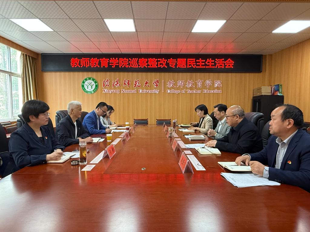 4月22日上午,教师教育学院在教7楼301会议室召开巡察整改专题民主生活会。校党委第三轮巡察第二巡察组副组长余胜国、校党委组织部副部长冀鹏、校纪委第三监督检查室主任李莉、校党委巡察办公室副主任刘洋到会指导。学院党委班子成员参加会议。会议由学院党委书记潘登主持。