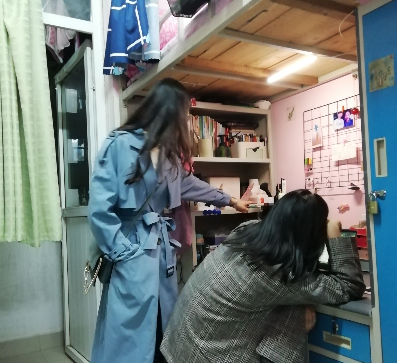 在走访过程中,三位老师与同学们进行亲切交流,了解学生的学习和生活情况,并对同学们提出的学习、生活和校园安全管理等各方面的问题进行解答;亲切叮嘱同学们要注意天气变化,及时添衣添被。同时,就宿舍晚归、外宿及使用违禁电器等问题对学生进行预防教育,希望同学们安全意识常存心中,将安全隐患从思想上杜绝。