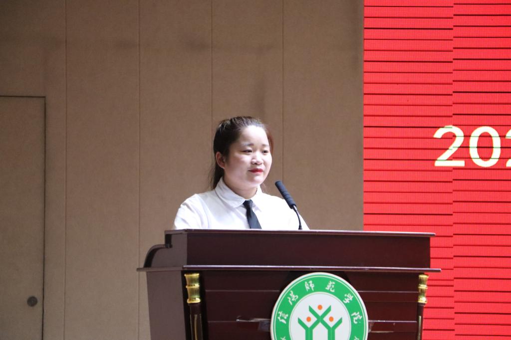 2017级本科二班张珍作为毕业生代表发言。她表达了对老师的感激、对校园生活的留恋、对自身成长的喜悦和对未来职业的向往。与此同时,她还着重谈到在民族复兴的伟大历史时期教师的重要性。她认为,新一代乡村教师应当守教育报国初心,担筑梦育人使命,用知识托举希望,助力民族复兴梦。随后,教师代表连亚飞发表讲话。他通过培养专业思维,把握专业知识,开展专业实练,积累专业情感四个方面向即将奔赴教师岗位的毕业生讲解如何成为一名合格的教师。薪火相传,赓续职业精神,这场师生之间的演讲以在校学生代表张秋雨的毕业祝福为结点,落下帷幕。