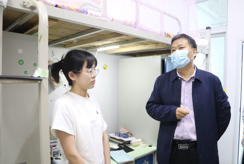 为切实了解校园封闭管理期间学生的学习生活情况与思想状态,加强毕业生安全教育,5月13日下午,我院党委书记潘登、院长付永昌携全体党政领导班子、辅导员深入走访2022届毕业生和研究生宿舍。