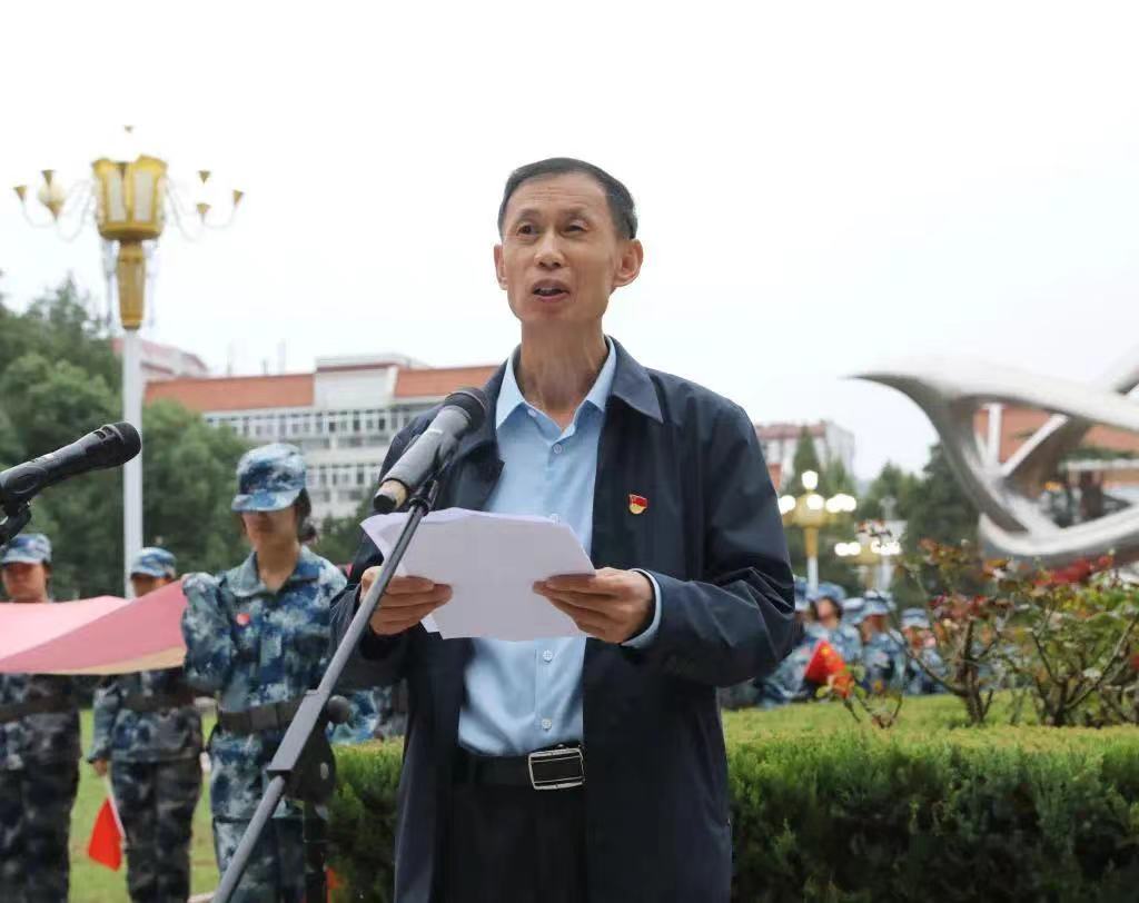 国庆节前夕,教师教育学院2024级新生参加了学校组织的升旗仪式,随着激昂的《义勇军进行曲》响起,鲜艳的五星红旗在风中缓缓升起。学生们全体肃立,面向国旗行注目礼,高唱国歌,嘹亮的歌声在校园上空回荡。与此同时,我院新生代表展开十米的巨幅国旗,庆祝祖国母亲75周年华诞。“你是中国人吗?”“你爱中国吗?”“你愿意中国好吗?”校党委副书记、工会主席岳宗德就新时代好青年如何答好“爱国三问”在国旗下对同学们发表重要讲话,对深化新时代大学生爱国主义教育提出明确要求。通过升旗仪式,充分激发出同学们浓厚的爱国之情。