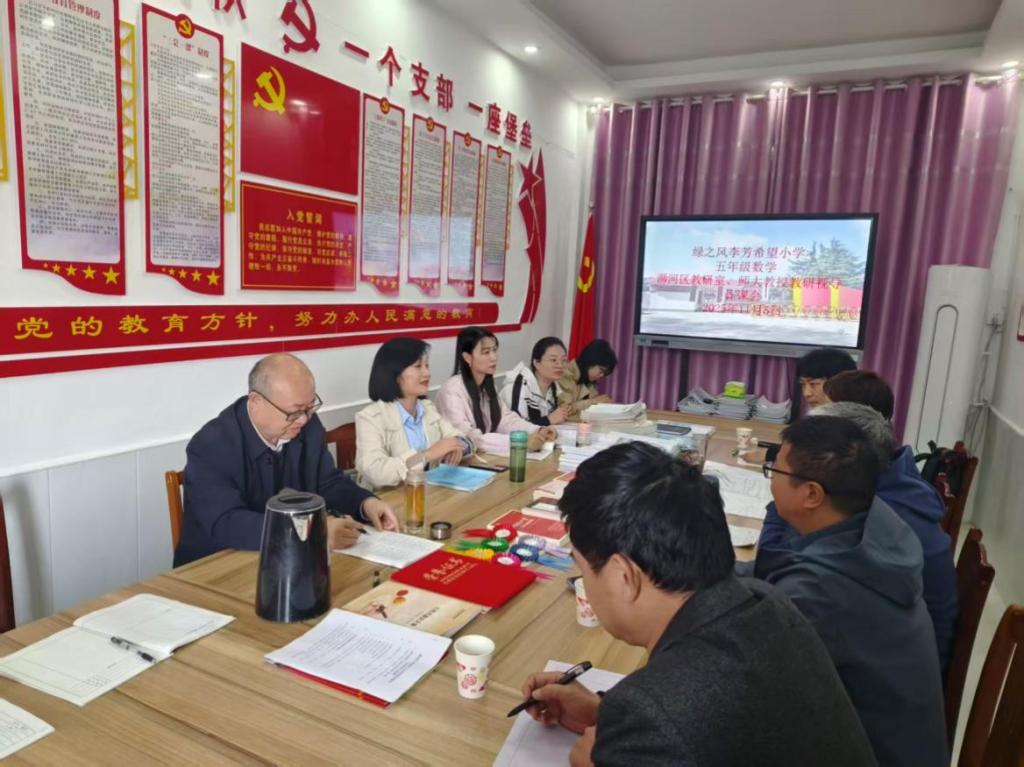 为深化教师教育改革,探索“U-G-S”协同育人深度合作,11月5日,教师教育学院基础教育服务博士团核心成员在院长李文田带领下,联合浉河区教育体育局教研室王纯丽副主任与各学科教研员一行,赴信阳市浉河区董家河镇绿之风李芳希望小学开展“同课异构”专题听评课联合教研活动。