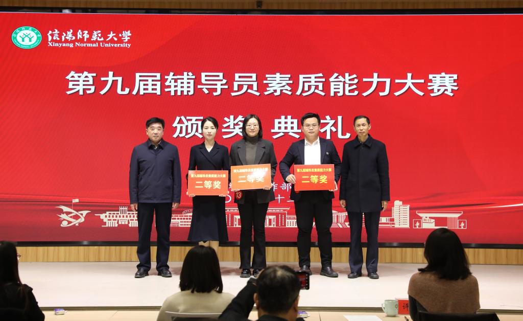 12月8日,信阳师范大学第九届辅导员素质能力大赛决赛在谭山书院博雅学堂二楼报告厅举行。校党委书记王文鹏、党委副书记兼工会主席岳宗德、副校长江玉安、朱晓东出席决赛。各学院党委副书记、全体辅导员到场观摩,并通过线上形式进行了网络直播。