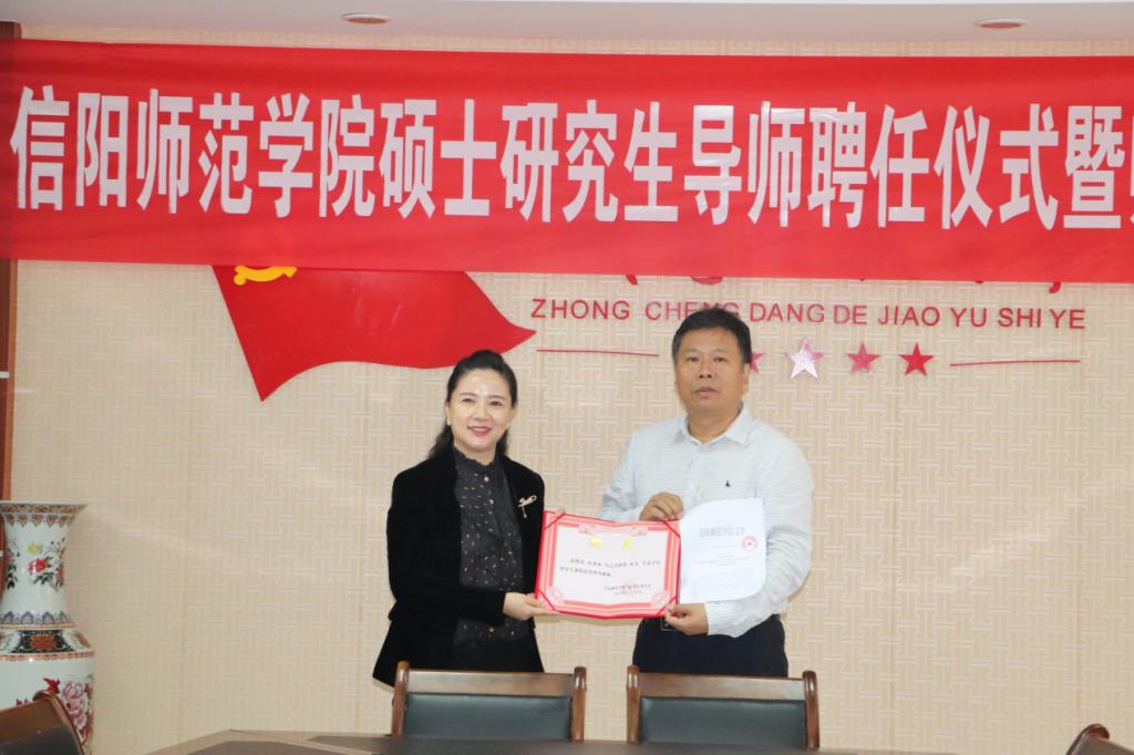 会上,付永昌介绍了参加见面会的相关领导、校内外导师代表及信阳师范学院教师教育学院办学基本状况和2019级小学教育专业硕士研究生招生情况;宣读了《信阳师范学院硕士研究生导师遴选和管理办法》及《信阳师范学院关于增列硕士研究生指导教师的通知》文件,增列信阳市第九小学校长周雁翎同志为信阳师范学院小学教育专业学位硕士研究生导师,并为周雁翎颁发导师聘书。新晋导师周雁翎表态发言,表示一定会按照信阳师范学院研究生导师相关规定要求,认真履行导师职责,完成硕士研究生培养任务。李文田就研究生导师岗位职责及小学教育专业硕士研究生培养方案进行了解释说明。2019级研究生进行了自我介绍,并和导师进行了沟通交流。
