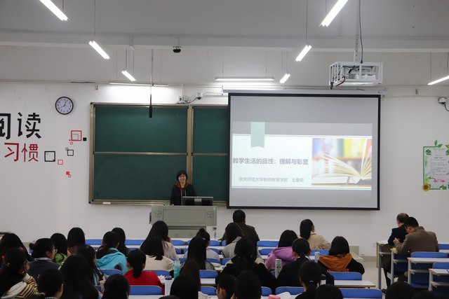 10月17日上午,应教师教育学院邀请,安庆师范大学王爱菊教授在社科楼121教室为小学教育专业相关师生及卓越教师实验班学生作了“教学生活的品性:理解与彰显”专题讲座。讲座由教师教育学院李文田博士主持。
