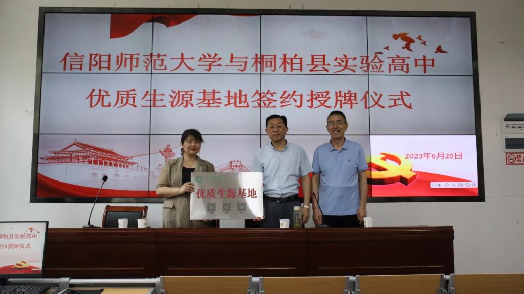 为进一步加强学校与优质生源中学的常态化联系,扎实做好招生宣传工作,切实提升学校招生生源质量。2023年6月29日,教师教育学院党委书记潘登、副院长张申亚前往桐柏县实验高中举行优质生源地签约授牌仪式。