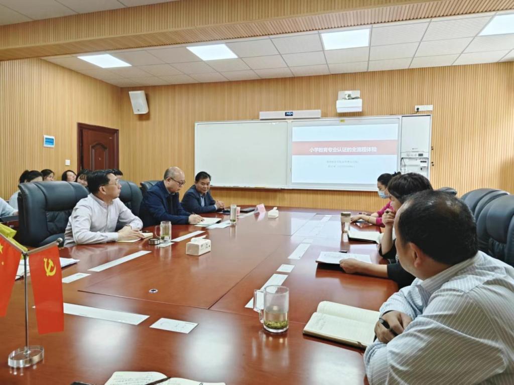 为进一步规范引导小学教育专业建设,深化教师教育学院师生对小学教育专业认证的理解与实践,推动学院人才培养质量与教学水平的持续提升。4月24日下午,教师教育学院邀请河南省高等学校教育学类教指委委员、郑州师范学院初等教育学院侯宏业教授为学院师生作小学教育专业认证学术报告。教师教育学院党委书记潘登、副书记王艳蕊,副院长李文田、张申亚及部分师生参加报告会。讲座由李文田主持。