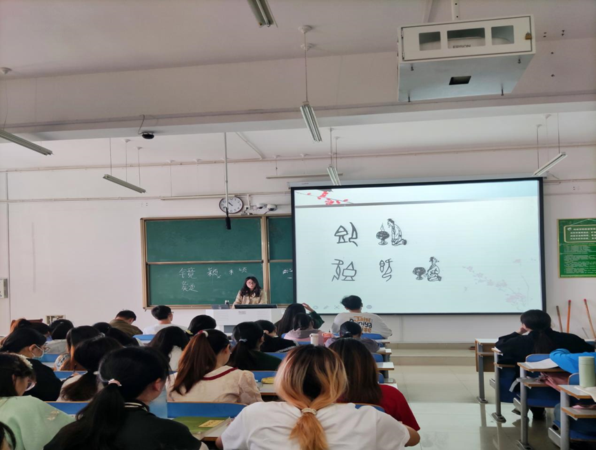 刘老师以看图识字为起点开始教学过程,着重将古今字、通假字的区别作为重要内容进行详细讲述;接着以学生专业为背景并以新近颁布的义务教育语文课程标准为依据,分析了汉语知识在小学学段课程实施中的重要性;最后以文字学在教学中的应用意义结尾。全系教师认真听课,详细记录,在领略古代汉语趣味性的同时轻松走进课程、感悟课堂。课后,大家围绕教学内容、教学方法、教学手段等进行探讨,一致认为本堂课教学内容新颖,富有特色,教师讲授严谨科学,条理清楚,互动性强,为师生呈现了一堂精彩的古代汉语课,活动取得圆满成功。