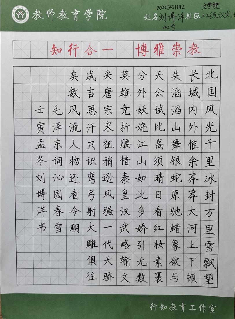11月10日,由教师教育学院习乐学社和行知教育工作室主办的“搴芳之行,以笔之名”钢笔字大赛颁奖仪式在教七楼201教室顺利举办。此次比赛采取线上征集作品的形式,全校共计200余人参与。我院特邀张峰老师担任此次大赛评委。