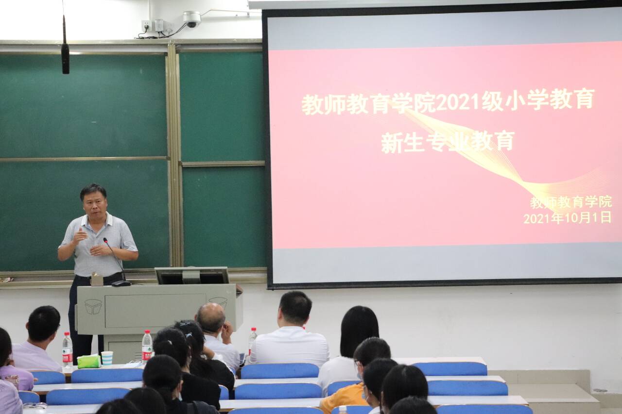 为了促进新生更快地适应大学学习生活,10月1日,教师教育学院在社科楼121举行了2021级新生入学专业教育大会。与会人员有教师教育学院院长付永昌、副院长李文田、教学秘书赵国龙、辅导员刘莅原以及2021级全体小学教育专业本科新生。会议由李文田主持。