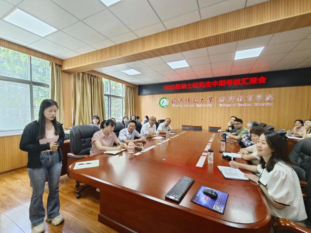 为全面检查研究生培养情况,切实保障人才培养质量,教师教育学院于2025年6月13日在教七楼301会议室举行了2023级硕士研究生中期考核汇报会。学院研究生导师组导师、研究生秘书、2023级小学教育专业全体硕士研究生参加会议。会议由教师教育学院院长李文田主持。