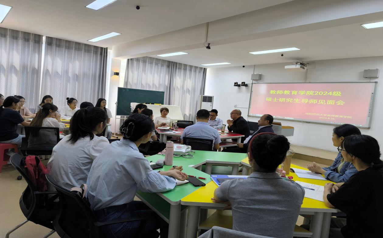 为进一步促进师生相互了解,明确研究生培养目标和要求,切实规范研究生管理工作,引导新入学研究生尽快适应研究生生活。9月24日下午,教师教育学院在教七楼402室举行了2024级小学教育专业硕士研究生师生见面会。学院硕士研究生导师、研究生秘书及2024级全体小学教育专业硕士研究生参加见面会。见面会由教师教育学院院长李文田主持。