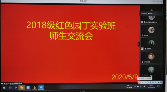 6月9日,教师教育学院2018级红色园丁实验班举行大别山精神“云交流”会,会议由红色园丁实验班班长史铭明主持。