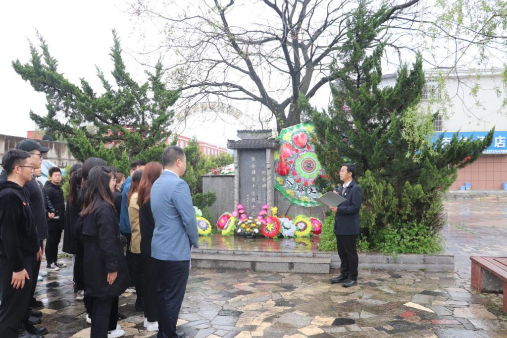 上午9:00,一行人来到“中原突围”战斗旧址参与革命先烈缅怀仪式,刘莅原主持。在庄严肃穆的国歌中,仪式正式开始。党员和团员代表向革命烈士敬献花篮、默哀,传达着内心的缅怀和哀思。雷玲部长带领党员重温了入党誓词,一句句入党誓词在碑前回响,提醒每一位党员“不忘初心、牢记使命”。接着,教师代表刘莅原为全体人员分享微团课,他从“中原突围”战役发生的历史背景切入,讲述了中原解放军艰苦奋战的过程和为心中理想英勇牺牲的大无畏精神。学生代表邵银萍在演讲中谈到,作为一名党员,要加强对四史的学习,进一步了解党的发展历程,继承和发扬先烈们的革命精神。最后,朱书记对在场学生提出三点要求。一是不忘初心,牢记使命,从革命先辈身上汲取伟大爱国奋斗精神,坚定理想信念;二是努力学习,增长本领,把握好青春时光,努力提升自身综合素质,成长为能堪大用的栋梁之才;三是注重实践,知行合一,注重理论实践相结合,把革命烈士不怕困难、不畏艰险的精神转化为锐意进取、扎实工作的实际行动。
