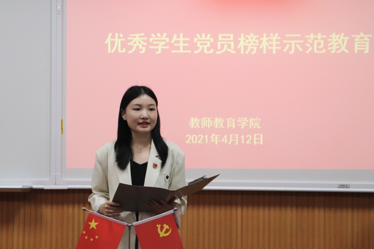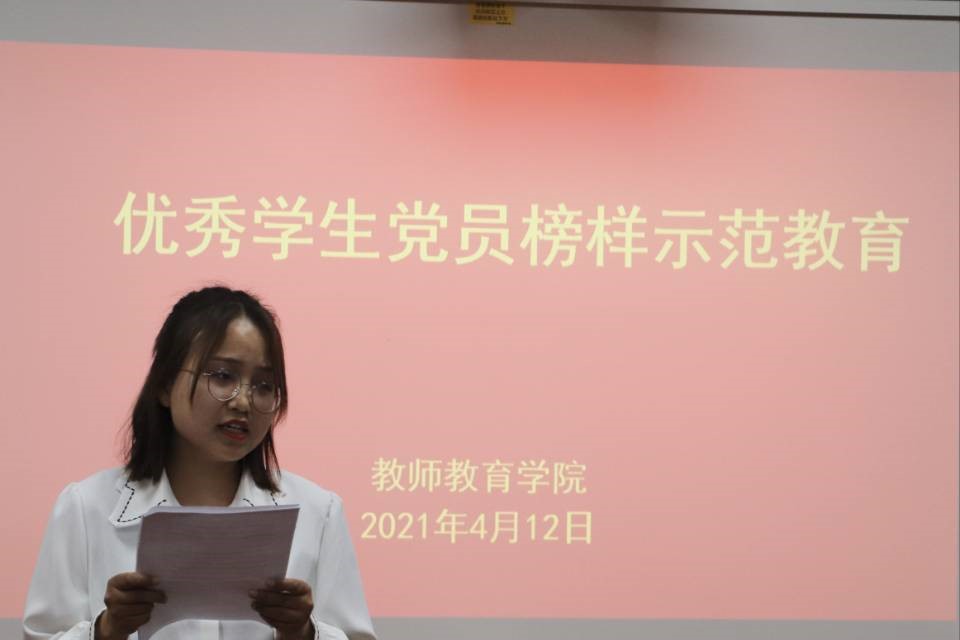 为进一步发挥学生党员的先锋模范作用,加强其党性教育,4月12日晚,教师教育学院学生党支部于教七楼301会议室开展了优秀学生党员榜样示范教育活动。学院优秀学生党员代表邵银萍、仇庭慧及第35期学生党员发展对象参加了此次活动。活动由学院学工办党团办公室部长王晶晶主持。