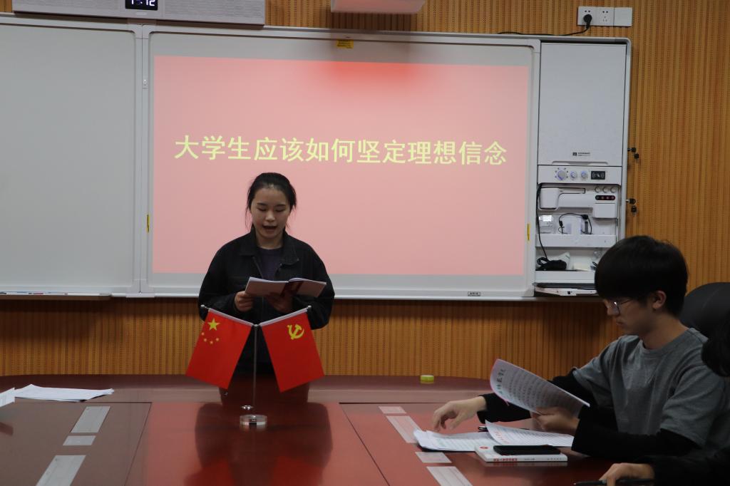 讨论会上,党员发展对象围绕“大学生如何坚定理想信念”、“大学生党员如何发挥先锋模范作用”两个问题,分小组深入开展学习讨论。在探讨“大学生如何坚定理想信念”的问题上,钱梦瑶表示,大学生坚定理想信念的关键在于“四重”,即重在科学理论的武装、重在高尚品德的涵养、重在艰苦环境的磨砺、重在批判方式的自省,同时,要牢固树立“四个意识”,坚定“四个自信”,拥护核心,紧跟核心,捍卫核心,使精神之钙更加充足。在研讨“大学生如何发挥先锋模范作用”的问题上,党员发展对象结合自身实际,各抒己见。陈妍谈到,大学生党员发挥先锋模范作用首先要从自身抓起,从小事做起,全心全意为同学服务,敢于批评与自我批评,并在学习中不断完善自我,发扬榜样精神,起到带头作用。经过激烈讨论,大家一致认为,作为党员发展对象,要加强政治理论学习,提升政治素养,打扫思想灰尘,不断夯实理想信念的根基,做好新时代中国特色社会主义建设者和接班人。