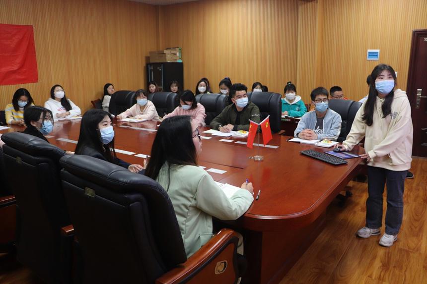 会上,党员发展对象围绕主题“中国共产党精神谱系的第一批伟大精神”依次从思想、学习、生活实践三方面展开具体论述和深入交流。其中,党员发展对象赵婕如从人物事迹、时代内涵两方面分享了焦裕禄精神,并就如何弘扬学习焦裕禄精神发表了自己的看法。他谈到,作为新时代青年学生,应该把焦裕禄精神作为一面镜子,时刻勉励和提醒自己,加强自身道德修养,提高自身的思想境界。黄翠翠以一代代人接续奋斗终把塞罕坝从荒漠变回草原的事件为切入点引出塞罕坝精神,提出作为学生党员要在学习生活和实践活动中充分发挥奋斗精神,做到平常时候要看得出来、关键时刻站得出来、紧要关头豁得出来,充分发挥党员先锋模范作用。邢晓玉紧跟时事,以神舟十三号圆满完成载人航天任务为话题,同在场人员就航天精神的超越性、实践性进行分享讨论,并号召各党员发展对象以航天英雄为标杆,切实提高自身本领,做到思想有高度、行动有力量、成绩有表现。