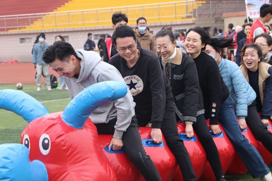 活动以“鼓动我心,齐心协力”和“武动青春,携手奋进”的武术表演拉开帷幕。接着,王文臣宣布活动正式开始。辅导员老师被分为学史明理队、厚德崇实队、不忘初心队、立德树人队等十支参赛队伍。队伍在志愿者的带领下,依次有序参加了螃蟹奔跑、无轨电车、旋风跑、拔河五个比赛项目和射箭体验项目。在拔河比赛项目中,队员们默契配合,商量战术,相互鼓气,充分发挥了团队合作的优势;在体验项目中,参赛人员感受到了射箭的乐趣,品味了传统文化的魅力。比赛期间大家争先恐后,活动现场人声鼎沸,加油声、呐喊声、擂鼓声热闹非凡,在一轮轮释放身心、挖掘潜能的游戏后,教师教育学院党委副书记王艳蕊、辅导员徐亚南、刘莅原所在的学史力行队荣获一等奖,立德树人队荣获二等奖,砥砺前行队荣获三等奖。最后,活动在合唱《没有共产党就没有新中国》的歌声中圆满结束。