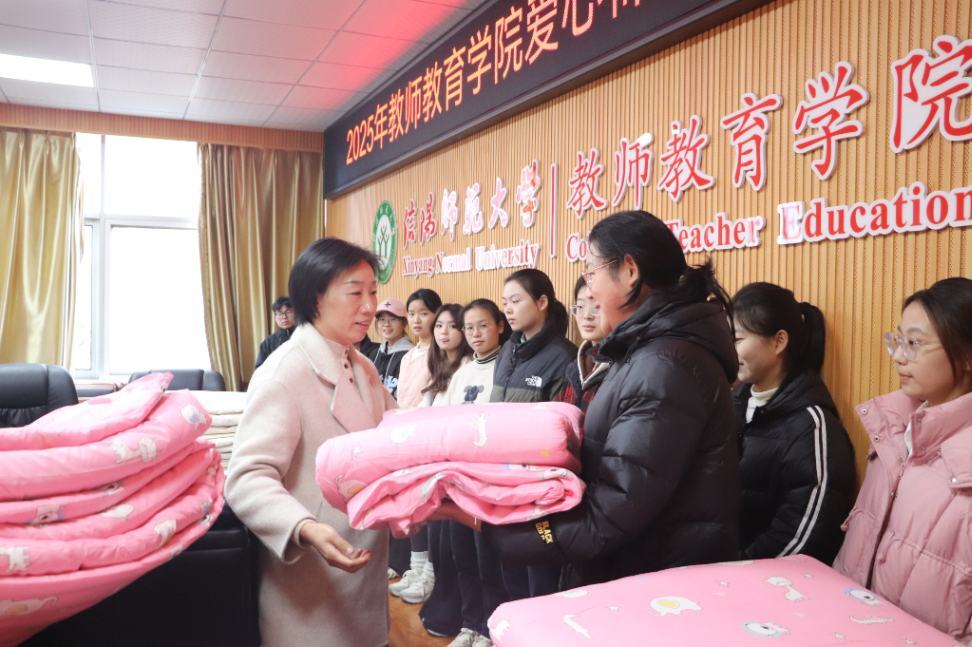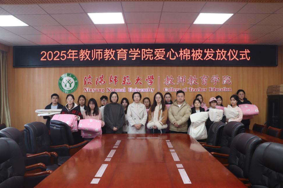 寒窗映雪明,暖意汇真情。11月25日,教师教育学院于教七楼301会议室举行2025年“寒冬送温暖”爱心棉被发放仪式。教师教育学院党委副书记王淑贤,辅导员姚雨承、李依、李珂以及受助学生代表参加仪式。