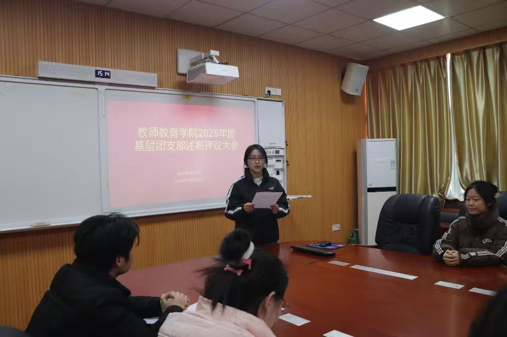 为全面总结本学年团支部工作成效,梳理工作亮点、剖析存在不足,进一步强化团支部战斗堡垒作用,激发团员青年的责任意识与使命担当。12月26日,教师教育学院在教七楼301教室召开团支部述职评议大会。团委书记姚雨承老师、李珂老师出席会议,教师教育学院各基层团支部书记参加会议。会议由教师教育学院分团委书记姚雨承主持。