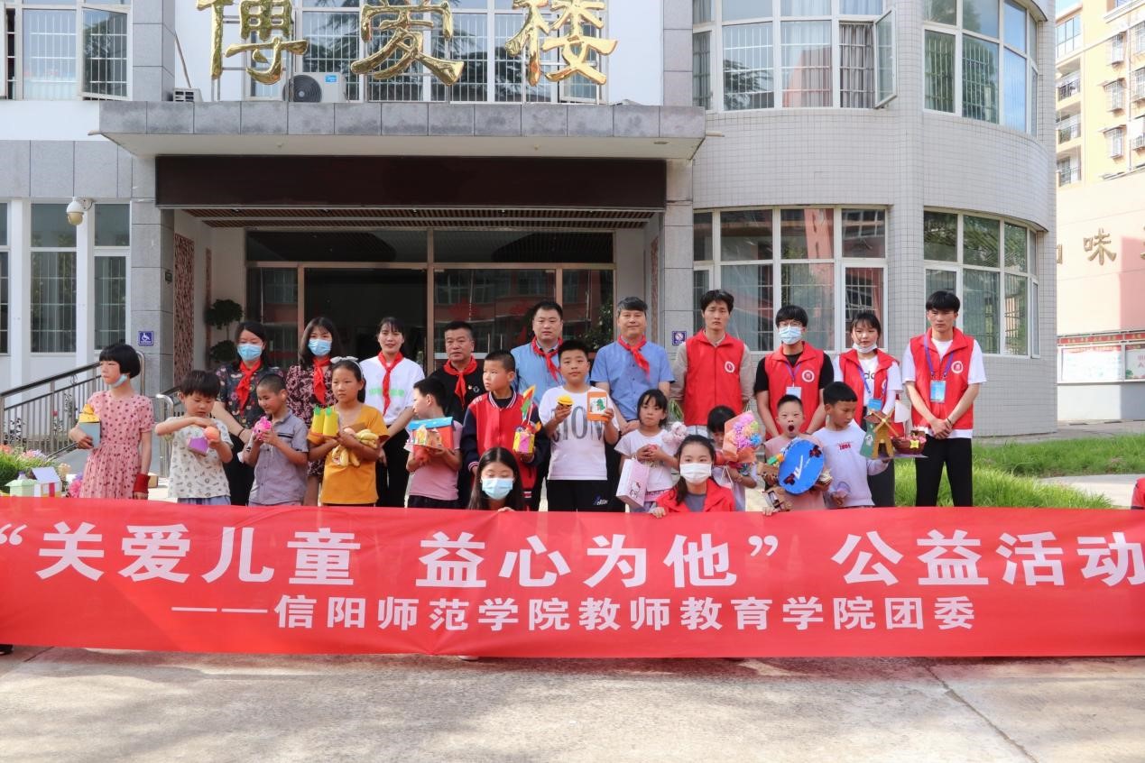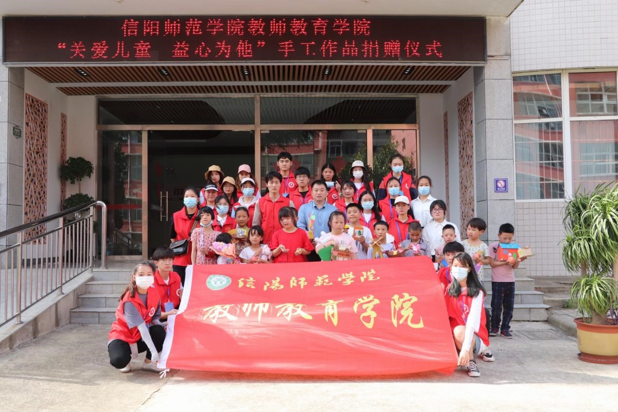 在六一儿童节来临之际,为引领同学们关注特殊教育儿童,加入到关爱特殊教育儿童的队伍当中,5月31日下午,由教师教育学院学工办办公调研室、学术纪检部与信阳市特殊教育学校合作开展的“关爱儿童,益心为他”爱心手工捐赠仪式顺利举行。飨堂社区党支部书记赵华,党总支部委员邓薇薇,团支部书记伍李玲,教师教育学院团委书记刘莅原,居民委员程秀华,党员志愿者温青,爱心志愿者魏淑林及20余名志愿者共同参与此次捐赠仪式。仪式由教师教育学院2019级学生许雅辉主持。