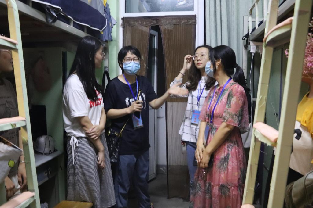 为切实做好疫情期间学生返校教育工作,进一步了解学生生活情况、增强学生安全防护意识,9月24日晚,教师教育学院党委副书记王艳蕊,辅导员李杨、李依、王召召对我院2018级、2019级、2020级的学生宿舍进行了走访。