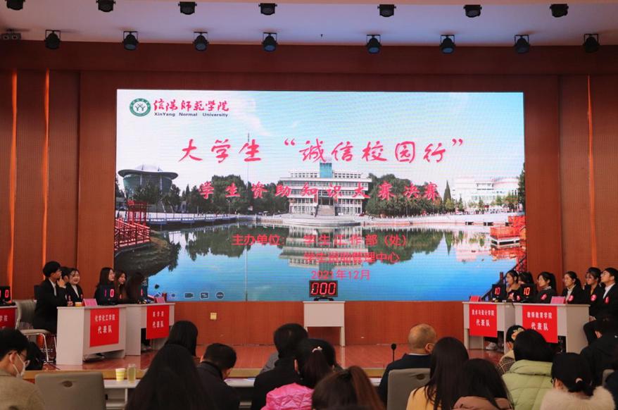 为持续深入贯彻落实全国全省高校思想政治工作会议和全国全省教育大会精神,积极宣传党和国家的学生资助政策与成效,营造形式多样、健康向上、格调高雅的高校诚信校园文化氛围,根据河南省教育厅等四部门关于举办河南省大学生“诚信校园行”学生资助知识大赛的通知精神要求,12月14日,由学生工作部(处)、学生资助管理中心联合主办的“诚信校园行”学生资助知识大赛决赛在逸夫楼报告厅举行。学生工作部(处)长王建旭出席,各学院党委副书记、辅导员及学生代表观看了比赛。