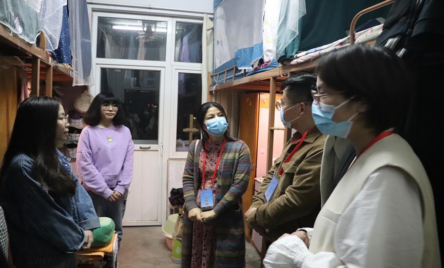 在走访20级宿舍时,王艳蕊询问了学生在疫情封校管控情况下能否适应,在学习生活上有没有困难。她表示,现阶段实行网上教学,学生应该注重自身的学习方式,提高学习效率,有困难要及时向辅导员和学院负责人反映,更要按时休息,加强锻炼,做好个人防护,保持宿舍的干净卫生,用良好的、积极的心态来面对封校生活。同学们纷纷表示在注重疫情防控常态下的个人管理的同时,学习方面也绝不懈怠,不辜负学校及老师们的期望。