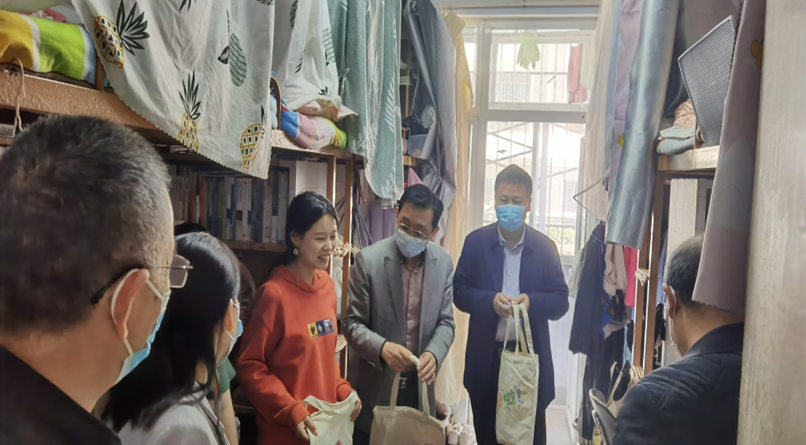 为切实了解校园封闭管理期间学生的学习生活情况与思想状态,加强毕业生安全教育,5月13日下午,我院党委书记潘登、院长付永昌携全体党政领导班子、辅导员深入走访2022届毕业生和研究生宿舍。