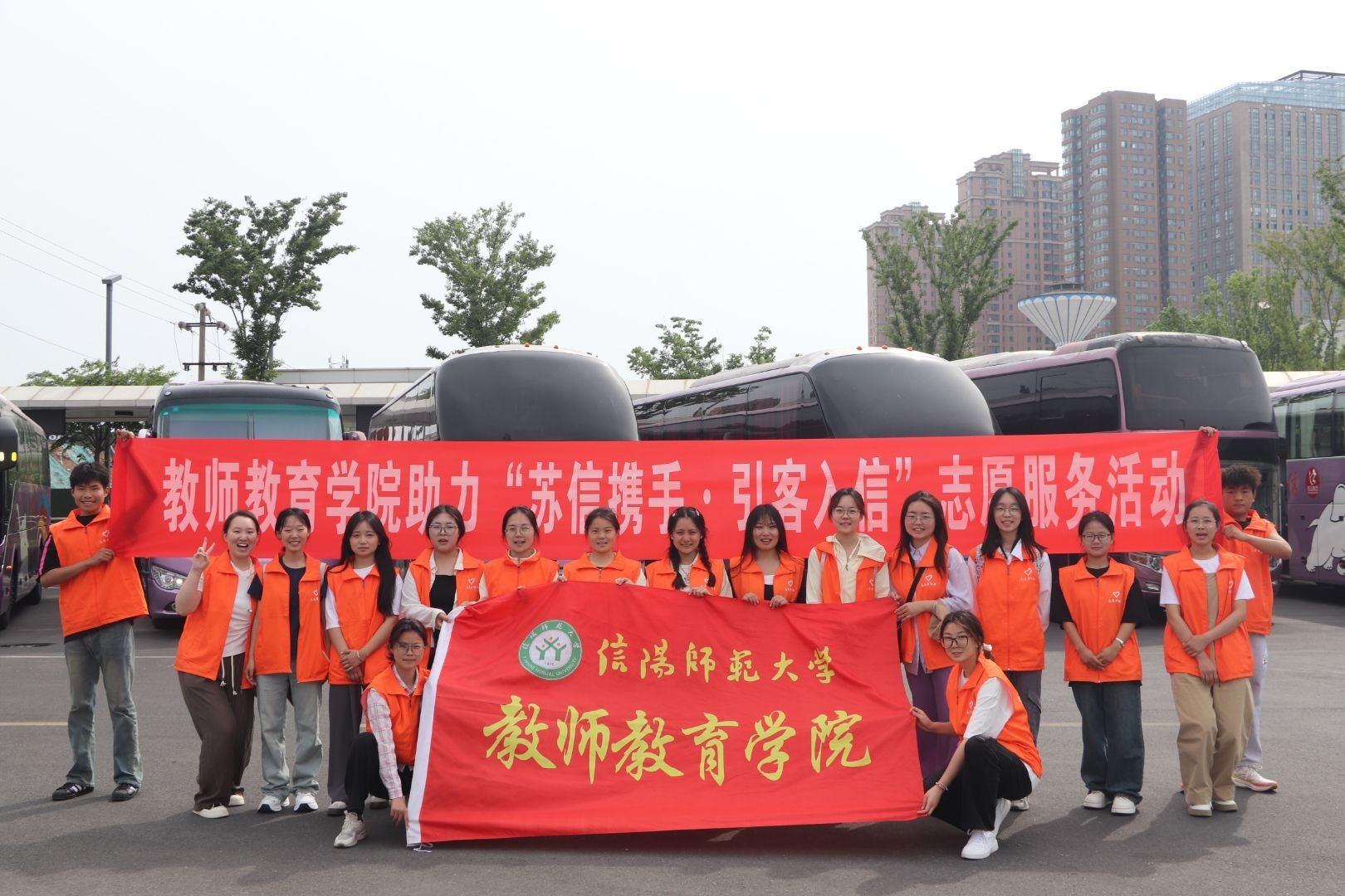近日,教师教育学院积极助力信阳市“苏信携手·引客入信”志愿服务活动,学院学生党员、入党积极分子等19名青年学子化身茶文化节文旅志愿者,热情迎接来自沈阳远道而来的730余位客人,以专业、贴心的服务展现青春信阳的独特魅力,在积极实践中绽放时代光芒,为营造“美好生活,青春信阳”贡献力量。