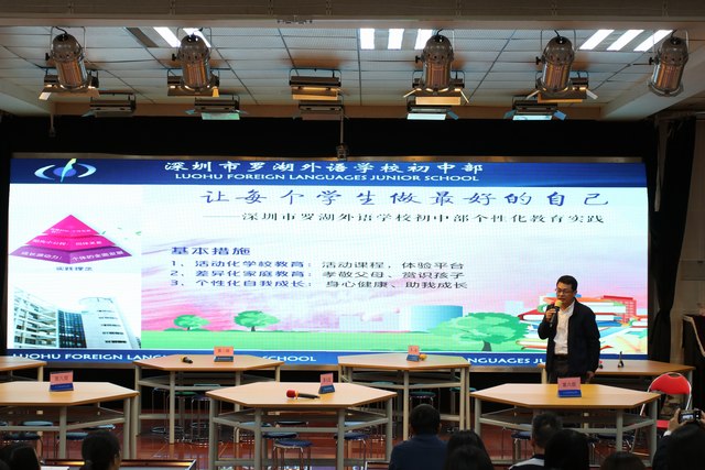 示范课后,陈兴平主任为研学师生作了“让每个学生做更好的自己”专题报告,陈主任向我们展示了罗湖外语学校关于学生教育、家庭教育、活动化教学等方面的办学实践与成果,让同学们更好地理解了让学生自我成长、自我发展的价值意义。