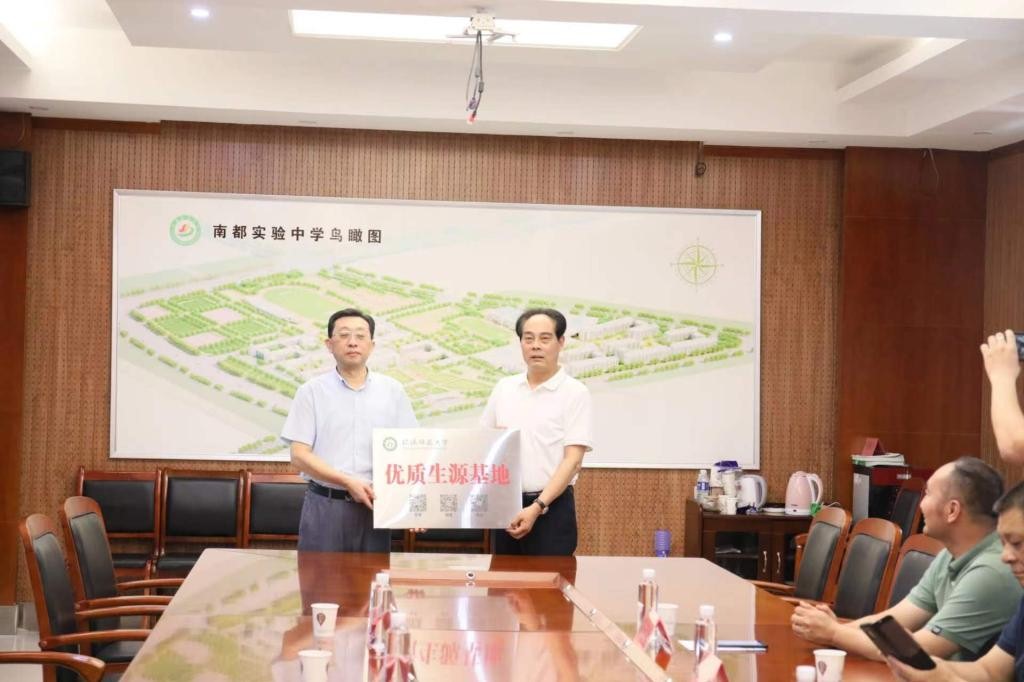 为进一步加强学校与优质生源中学的常态化联系,扎实做好招生宣传工作,切实提升学校招生生源质量。2023年6月30日,教师教育学院党委书记潘登、副院长张申亚前往南都实验中学举行优质生源地签约授牌仪式。
