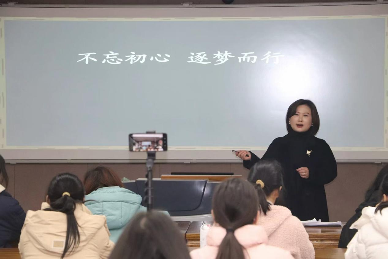 12月12日,应教师教育学院邀请,信阳市第十三小学副校长潘攀在教七楼201教室,为学院师生作题为“不忘初心,筑梦前行——寄语青年教师的专业成长”的学术报告。报告会由教师教育学院实践中心主任张祥耀主持,2024级小学教育专业(公费师范生)班全体学生、研究生及相关教师参加本次报告会。